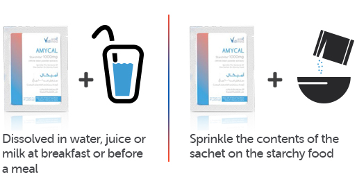 Amycal comes in packs of 30 sachets containing 1000mg of Starchlite - making it easy for consumers who want to control their carbs wherever they go.